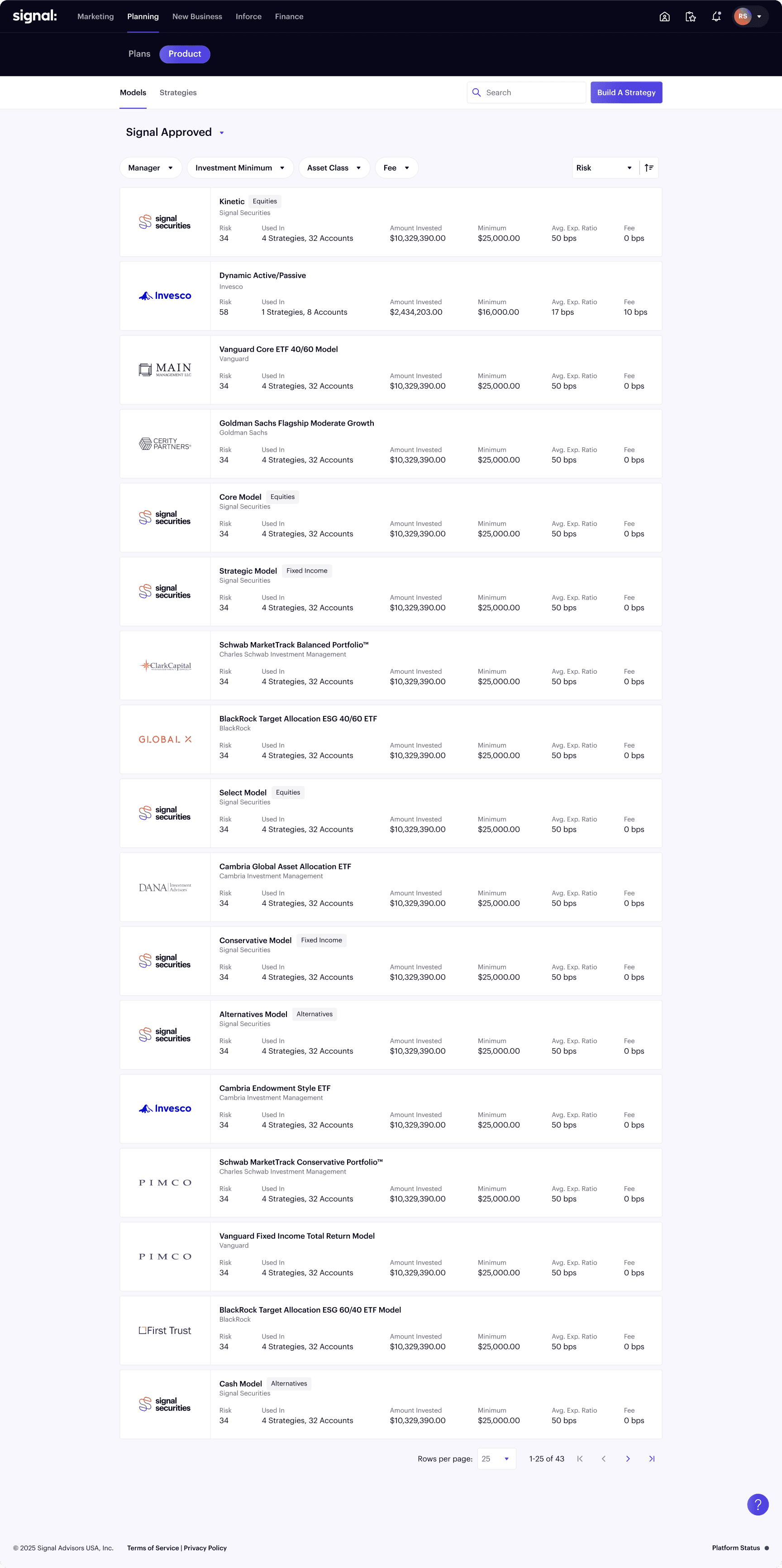 Access a curated selection of investment models, compare strategies, and allocate quickly within one platform. Whether you're managing risk or tailoring for goals, Signal helps you stay flexible and in control.